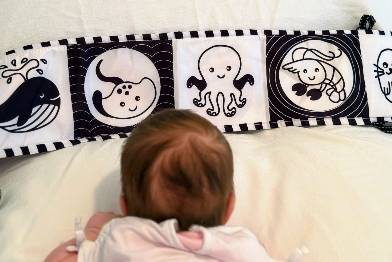 Liber Monetssori per zhvillimin vizual te femijeve me lidhese per tu varur ne krevat/karroce.