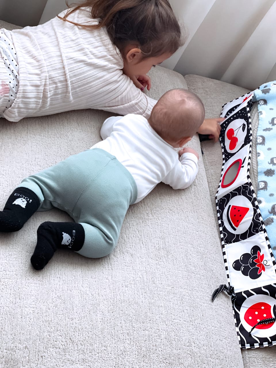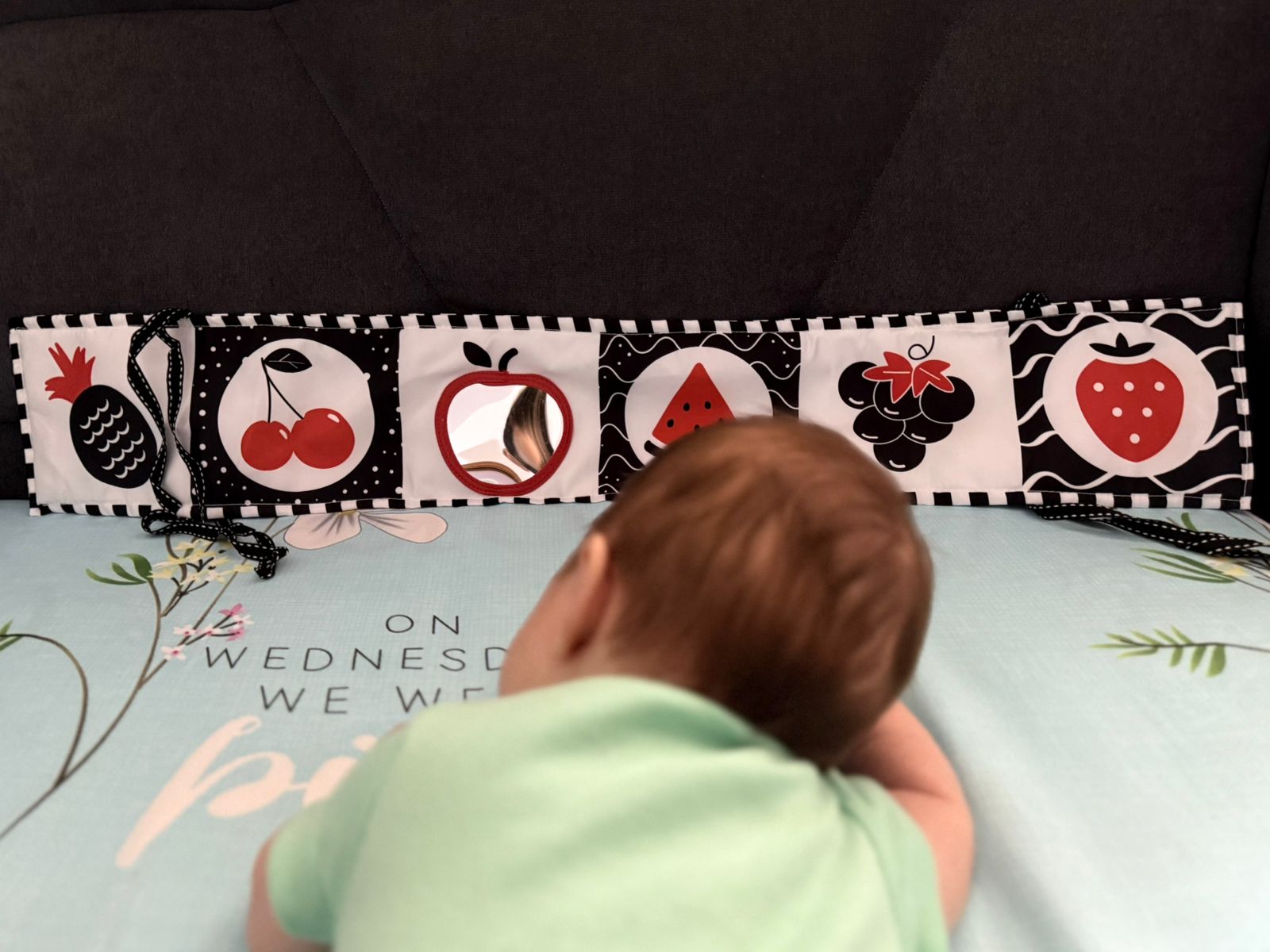 Liber Monetssori per zhvillimin vizual te femijeve me lidhese per tu varur ne krevat/karroce.