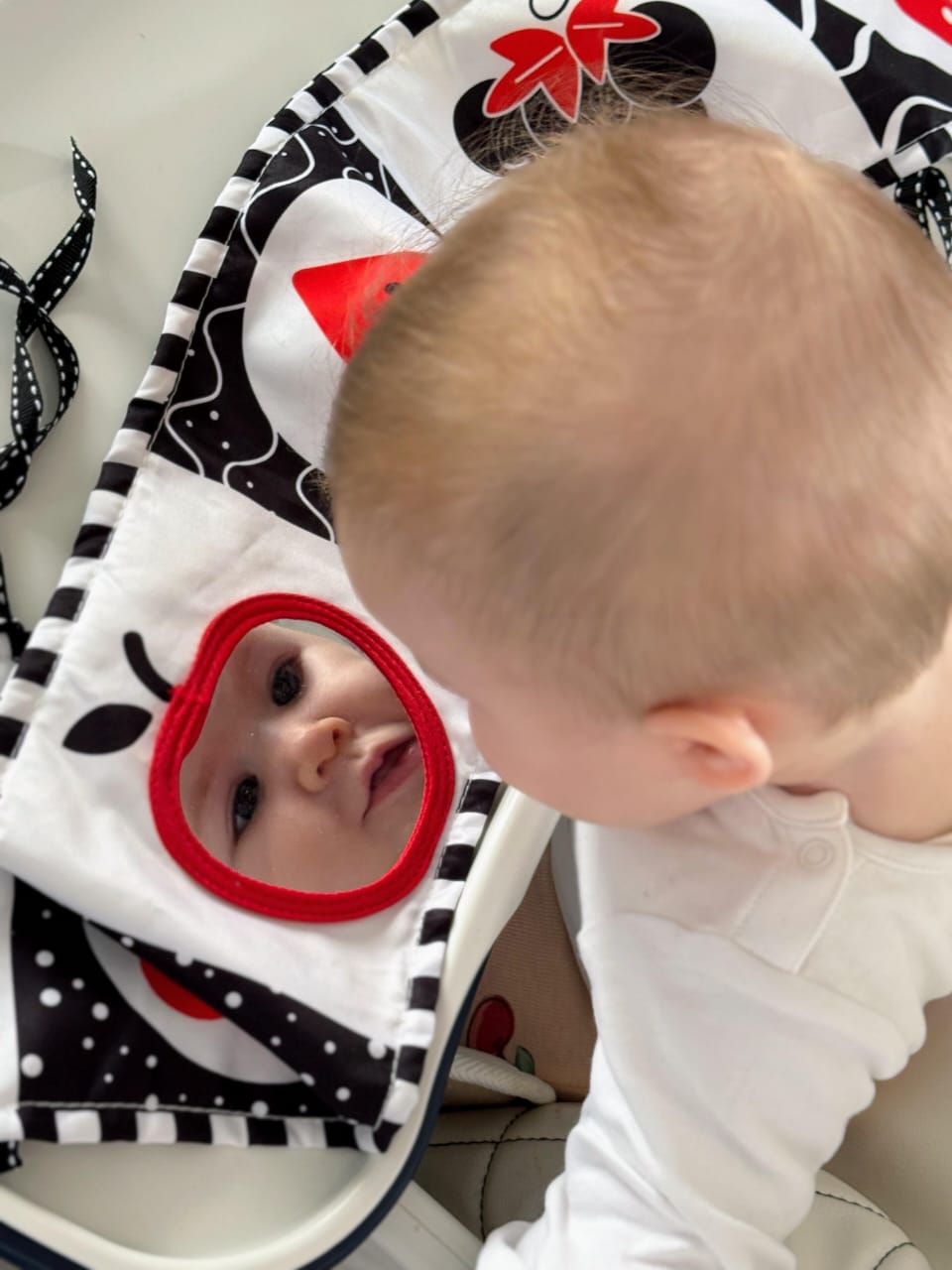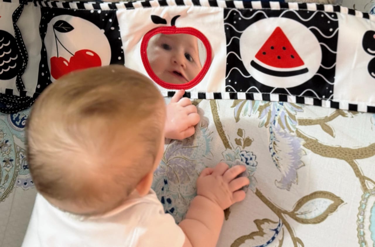 - Ka nje pasqyre te vogel, ideale per tummy time.