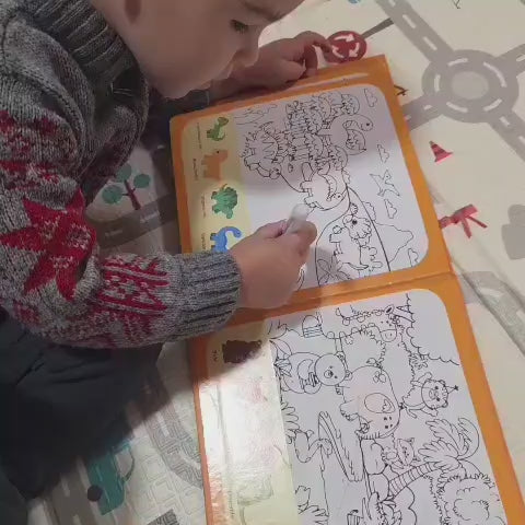 Nje pjese e librit me ngjitese te kafsheve, nje tjeter qe ngjyroset vetem me uje, pa rremuje, pa njolla.